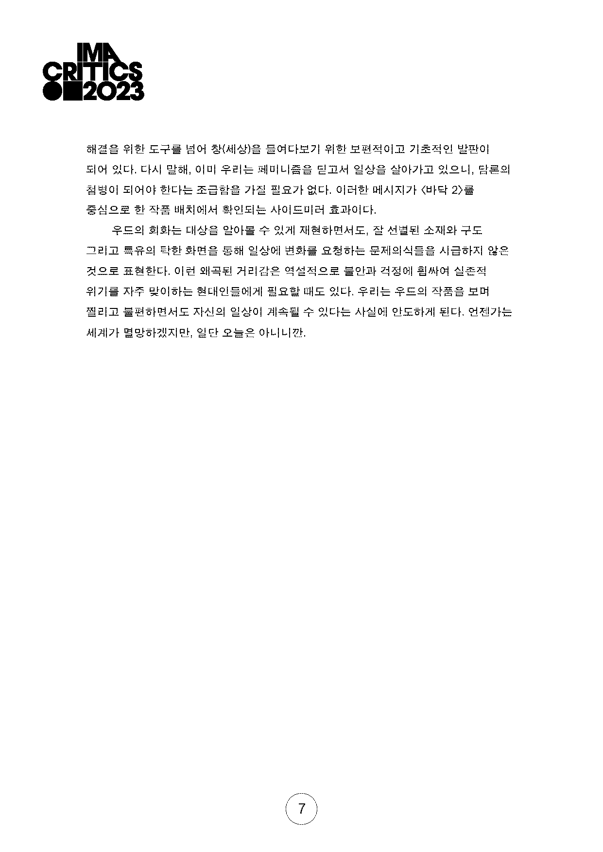 원문확인은 일민미술관 누리집 https://ilmin.org/ima_on/2023imacritics1/